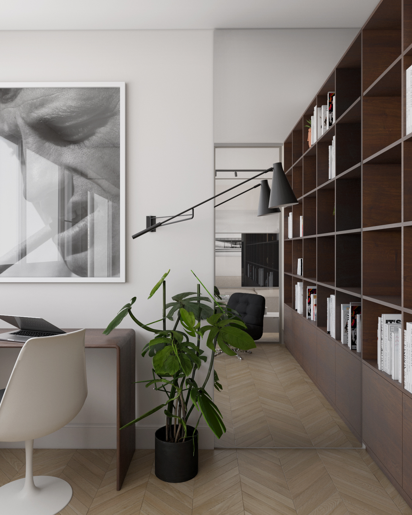 Verrière sur mesure entre la bibliothèque et le salon d’un appartement au style contemporain à Metz.