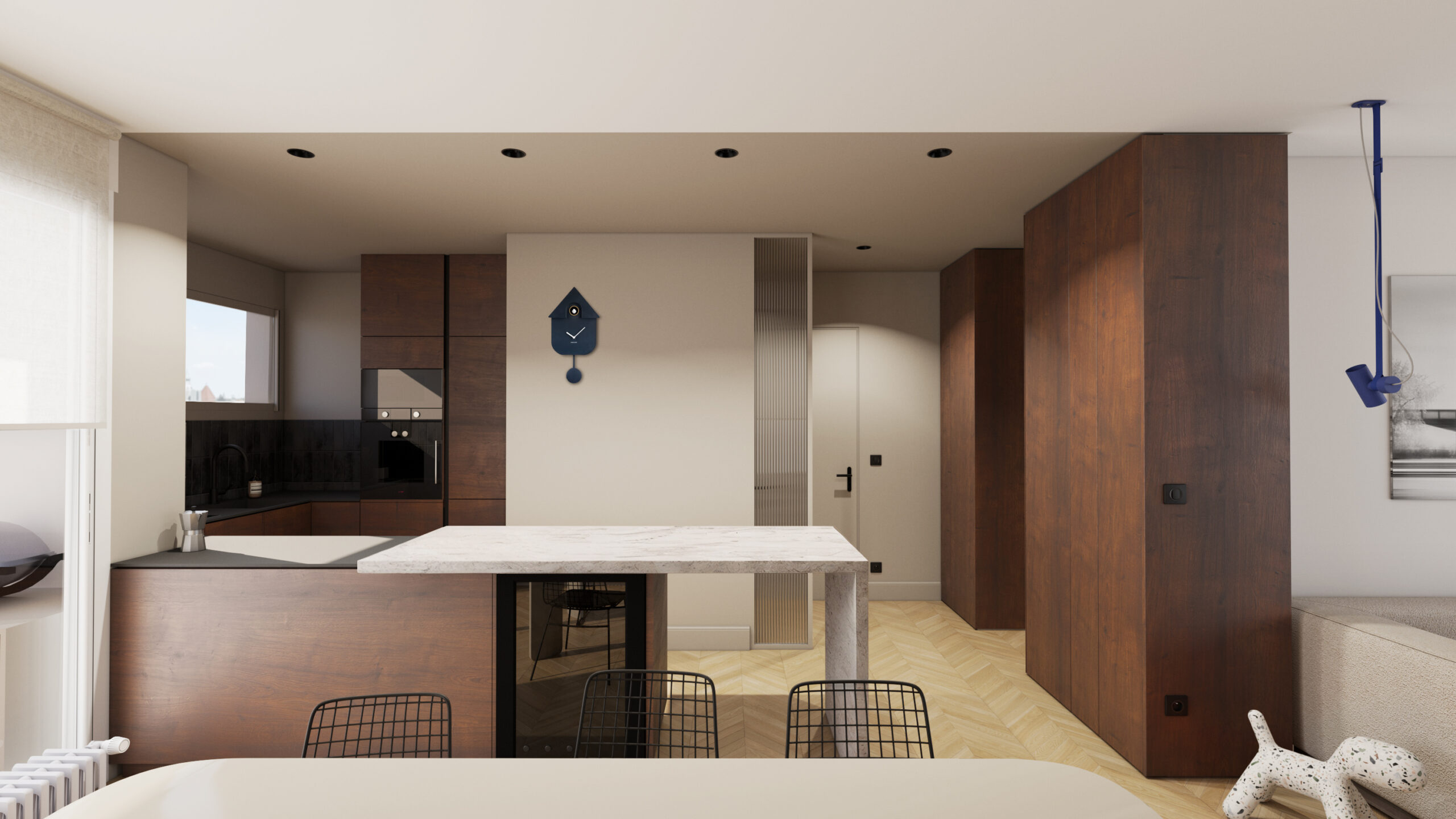 L’appartement a été repensé de A à Z : de la distribution des espaces à la décoration, chaque détail a été imaginé pour créer un intérieur harmonieux, fonctionnel et élégant.